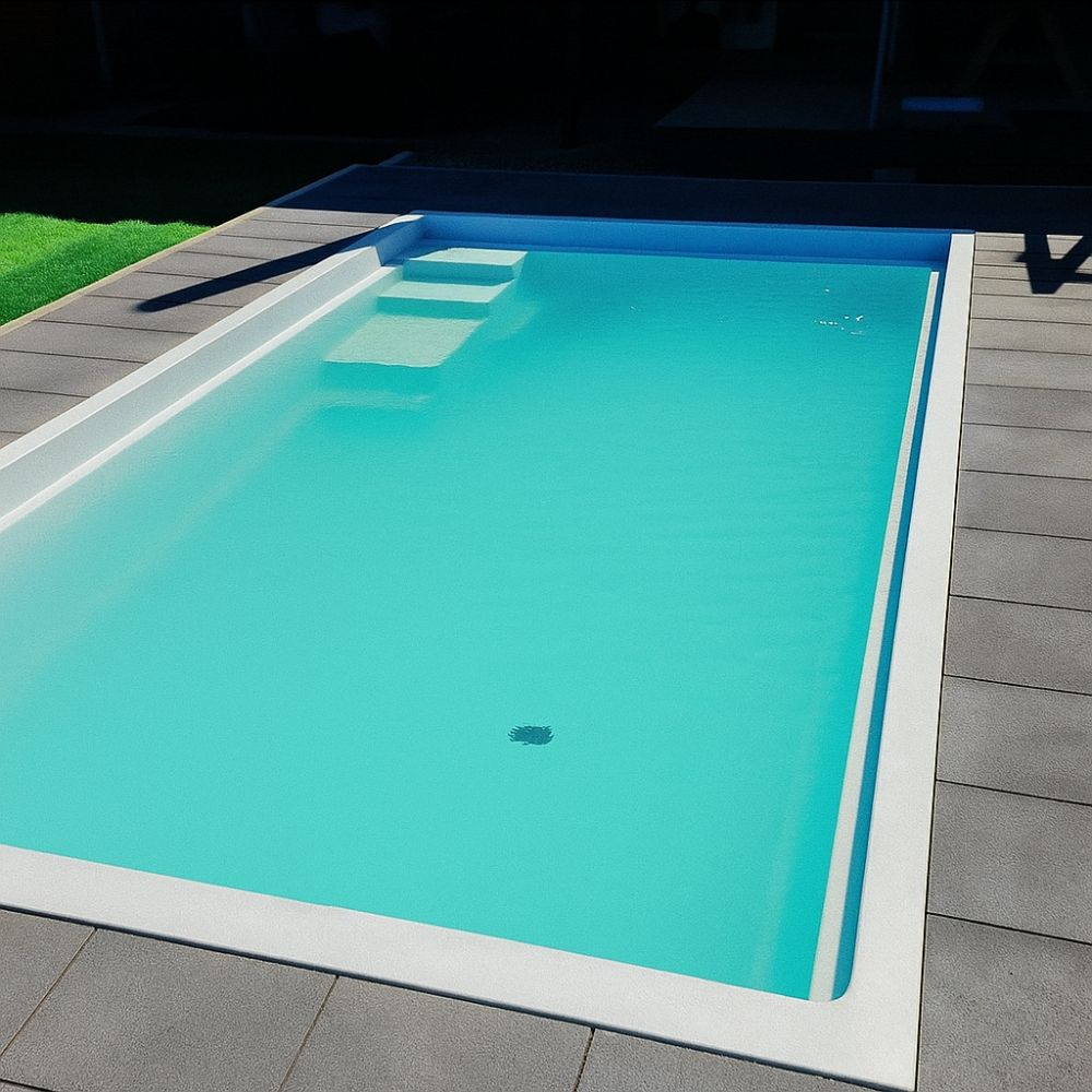 La piscina in poliestere MORGAN è una proposta ideale per chi ama le forme rettangolari classiche.