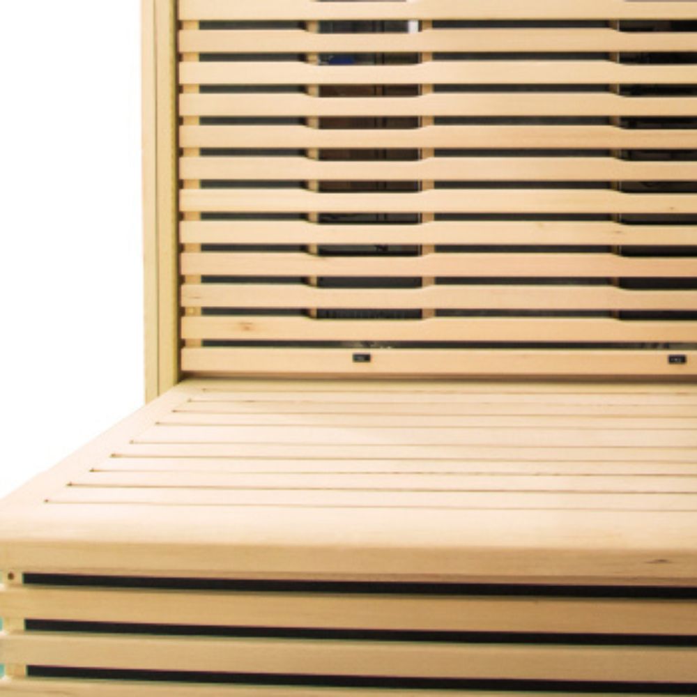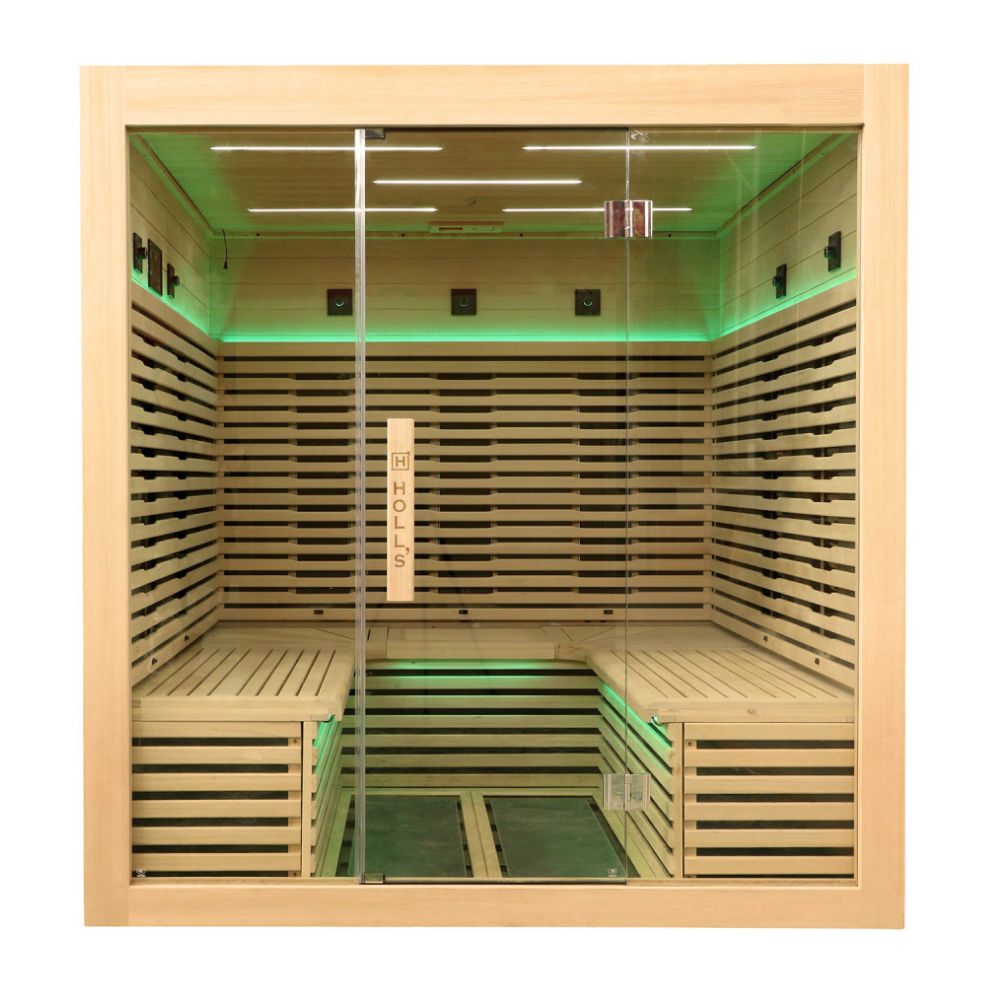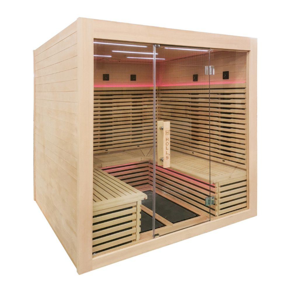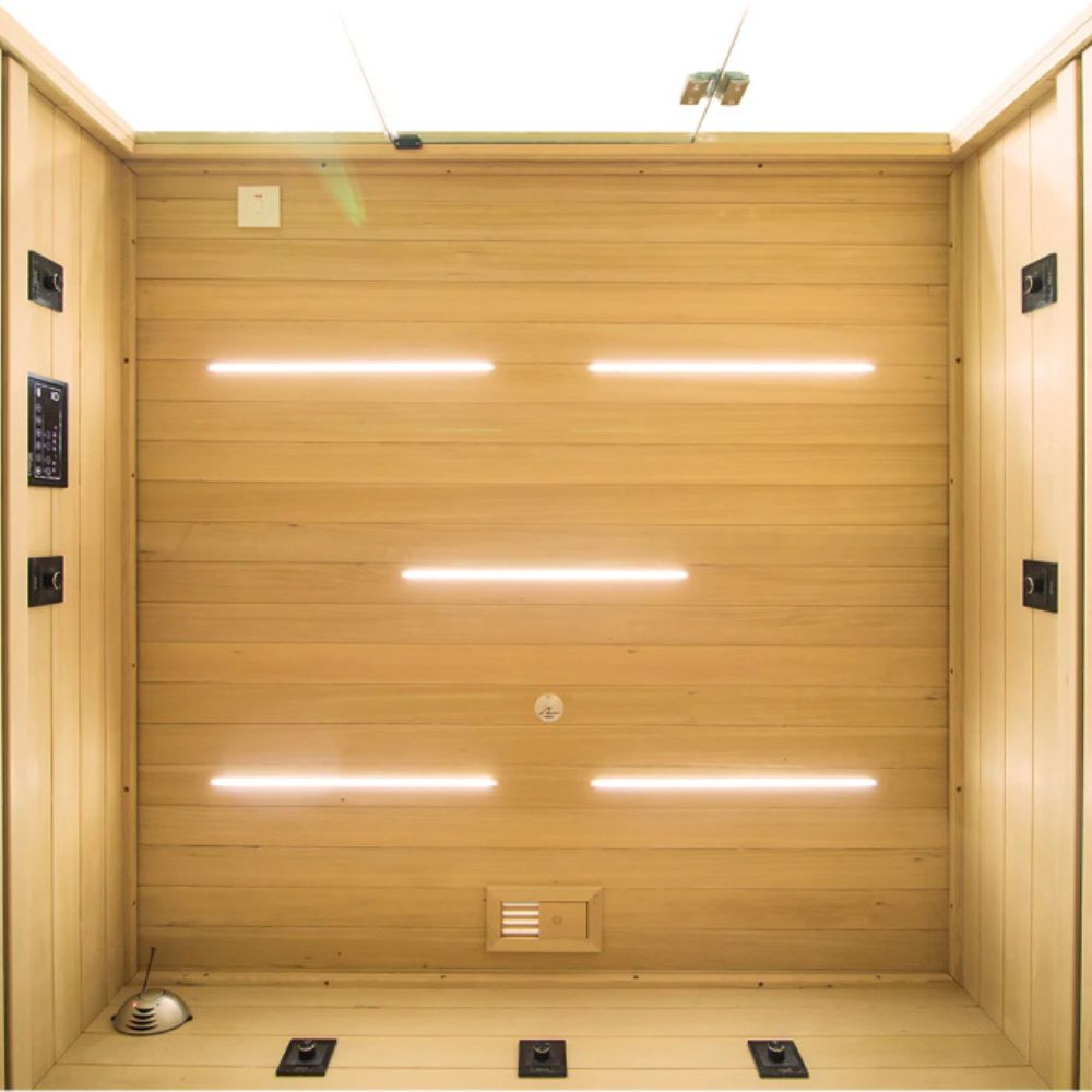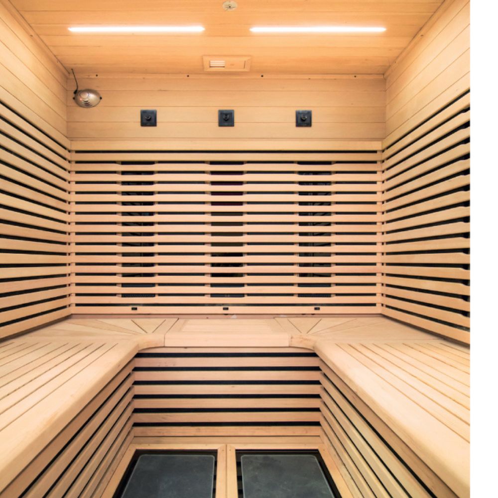 Questa cabina a raggi infrarossi di nuova generazione è progettata per accogliere fino a 6 persone, unendo la potenza della tecnologia Dual Healthy al fascino naturale dell’abete rosso canadese.
