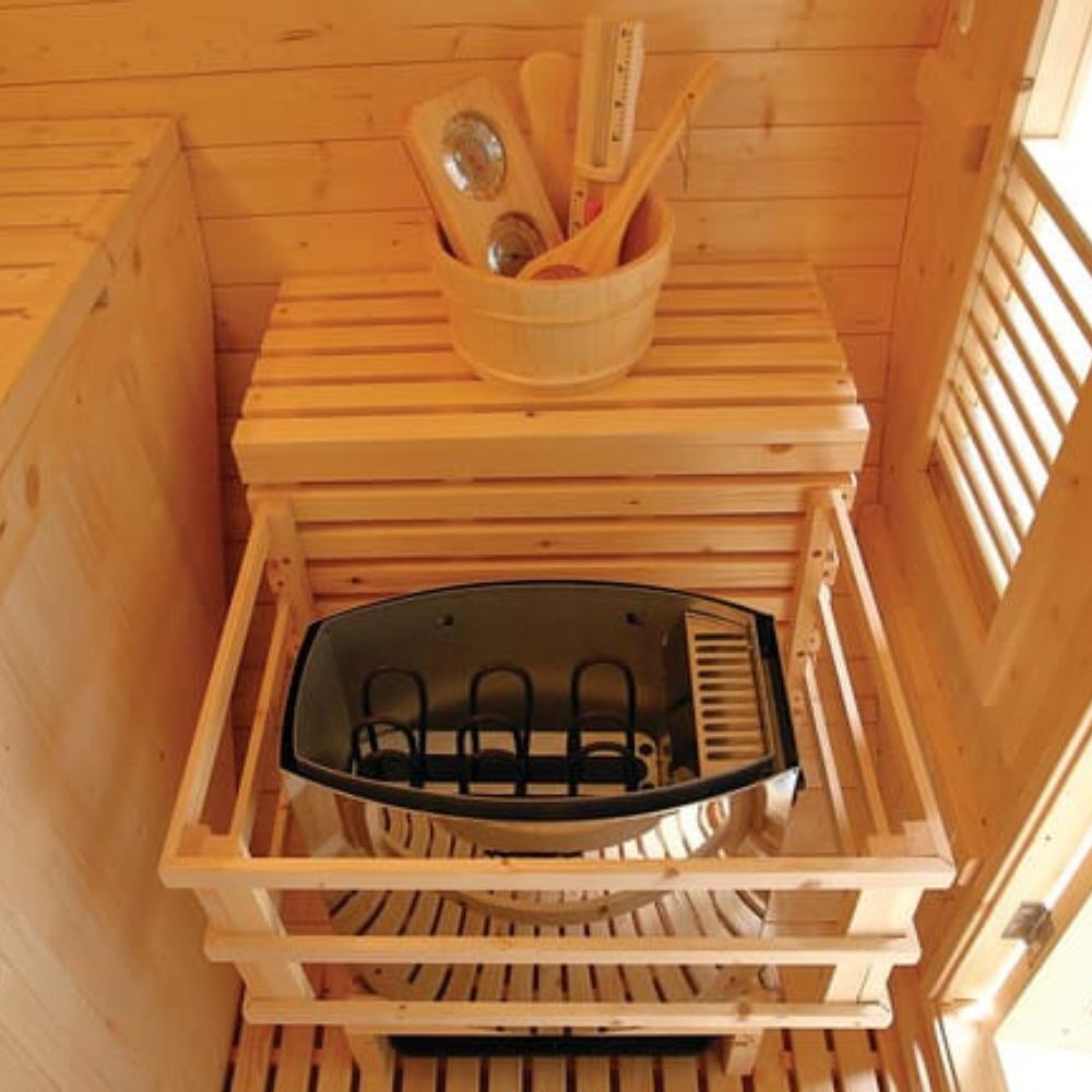 • Kit sauna tradizionale: Secchiello in legno, mestolo, termometro, igrometro