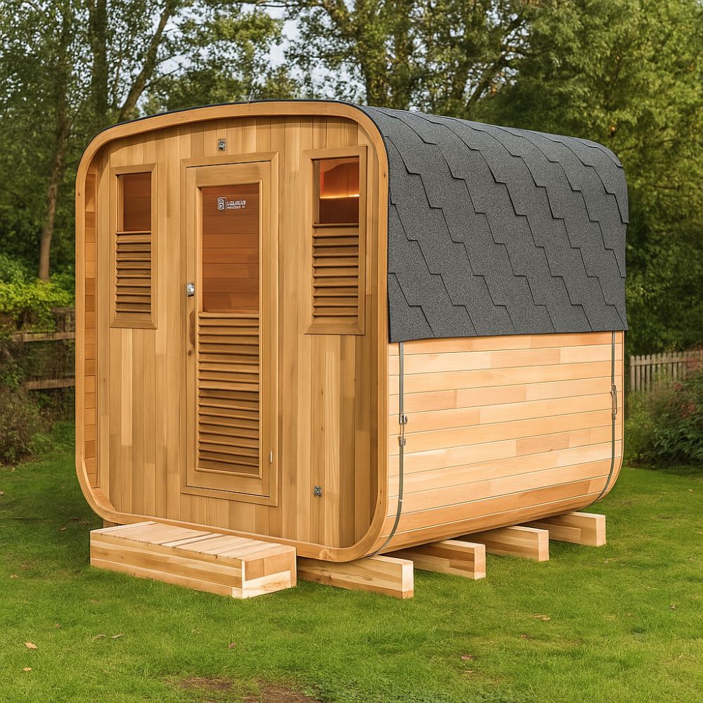 La sauna per esterno Soleil riprende tutte le caratteristiche di una cabina di alta gamma e propone un volume confortevole grazie alla sua forma quadrata.
