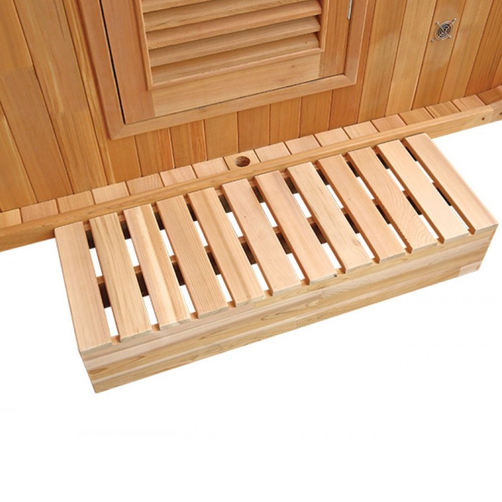 Progettata per accogliere fino a 6 persone, consente di godere di un’autentica seduta finlandese grazie alla panca a due livelli.