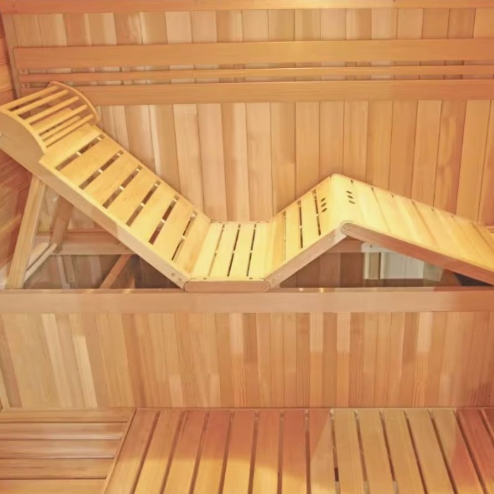 | Attrezzature e accessori | Doppia altezza del banco, panca superiore retrattile con poggiatesta rimovibile, secchio di legno, mestolo, termometro, igrometro, clessidra |