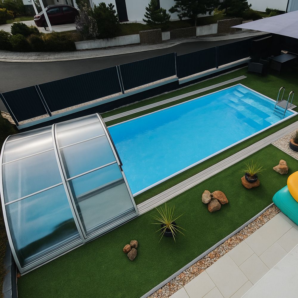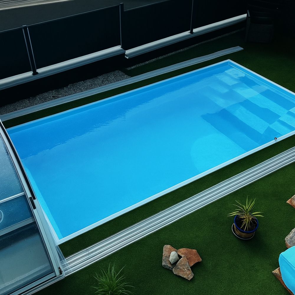 Piscina con scale romane, una proposta elegante e senza tempo, disponibile in diverse lunghezze (da 5 a 10 m).